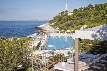 Located between Nice and Monaco, The Grand-Hotel du Cap-Ferrat, A Four Seasons Hotel, is a rare and exquisite seaside retreat housed in a palatial mansion on the Cote d’Azur, at the tip of the peninsula of Cap-Ferrat, amidst 17 acres of lushly landscaped gardens with panoramic views of the Mediterranean. The historical building of the Grand-Hotel has always welcomed its guests in the utmost luxury and sophistication since 1908. Throughout the eras, the Grand-Hotel du Cap-Ferrat with its 74 rooms and suites has consistently been ahead of its time, offering the most luxurious facilities and innovative services to its guests. The Grand-Hotel serves French Mediterranean cuisine.