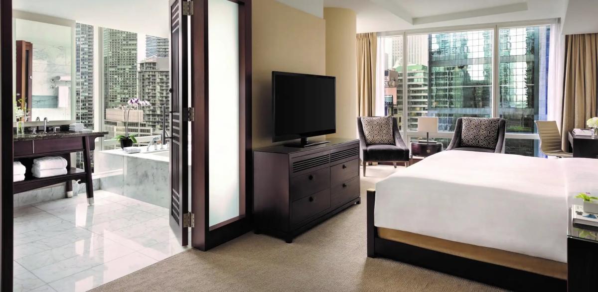 Ritz Carlton - TorontoTravel Time to Tennis: Approximately 30 minutes via car or subwayThe Ritz-Carlton, Toronto is located in the heart of Downtown Toronto, overlooking Lake Ontario and the stunning city skyline. A key location, the hotel is in close proximity to the Billy Bishop Toronto City Airport and iconic city highlights like CN Tower, Ripley's Aquarium, The Rogers Center, Scotiabank Arena, Hockey Hall of Fame, The Princess of Wales Theater and Roy Thompson Hall (the official venue host for Toronto International Film Festival - TIFF). Descripción completa y más fotos
