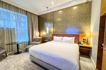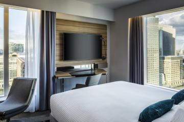 Experience rejuvenation and productivity at the London Marriott Hotel Canary Wharf, a premier hotel in Canary Wharf. Perfectly positioned on the waterfront, this family-friendly destination combines work and leisure just moments from East London's top attractions. As one of the top Canary Wharf hotels, our spacious rooms and suites offer plush signature bedding, floor-to-ceiling windows, and stunning views of Canary Wharf and West India Quay.Enjoy a delicious breakfast or steakhouse favorites at Manhattan Grill, or savor Afternoon Tea and craft cocktails at G&Tea Lounge. Our hotel also features a 24-hour fitness center, relaxing sauna, and full-service business center. With 19 versatile event spaces, it's ideal for meetings and social gatherings, making it one of the best business hotels in London. Conveniently located near ExCeL London, The O2, and Queen Elizabeth Olympic Park, the Marriott Canary Wharf is your gateway to exploring the vibrant East London Docklands.