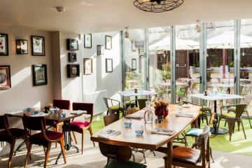 Enjoy internationally inspired cuisine in the riverside restaurant, Scoff & Banter, providing stunning views of the Thames through the floor-to-ceiling windows.
