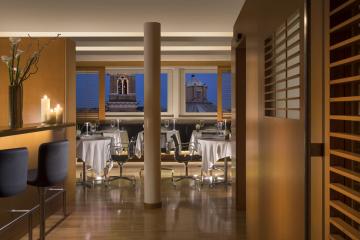 Our restaurant Mater Terrae and two of our Hotel’s floors were conceived and designed by American architect Richard Meier , with rooms and suites bearing his unique signature in each detail. Oak paneling and leather surface alternate with statuary grade Carrara marble, splendid yellow Siena, black Portoro and Navona travertine. All these elements as a whole create a masterpiece of contemporary architecture.