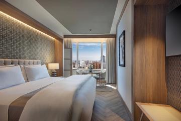 The AC Hotel Cuzco by Marriott is located in the prestigious Paseo de la Castellana in Madrid just 5 minutes away from the Santiago Bernabeu Real Madrid´s stadium. It features a gym and has free Wifi throughout the hotel . The AC Cuzco 318 guest rooms are spacious and modern equipped with a 49” plasma TV with satellite and international channels. Each room has a minibar and a private bathroom. They also have independent air conditioning and heating. The hotel serves a high quality breakfast buffet and a offers a large variety of international dishes prepared with fresh and seasonal products for lunch and dinner. The AC Lounge serves a variety of cocktails and snacks. Room service is also available 24 hours. AC Hotel Cuzco by Marriott is located next to Cuzco's Metro Station, while the Chamartin train station is just 2 km away.