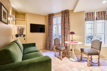 Located in the chic Saint-Germain-des-Prés neighborhood, this hotel is 0.4 km from Odéon metro stop and 1 km from the Louvre. The traditional rooms feature free WiFi and flat-screen TVs, writing desks and marble en suite bathrooms with tubs. Breakfast (surcharge) is served in the classic dining room with wood tables and vintage tapestries. A casual meeting space provides a classic Parisian vibe, and there’s also a lounge with a fireplace.