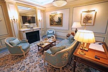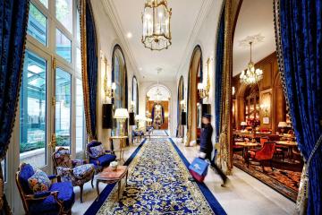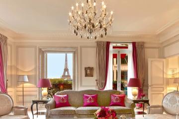 Just steps from the Champs-Elysees, in the heart of Paris' Golden Triangle, this legendary palace sits in an original 1928 landmark Art Deco building, in a unique atmosphere created by sumptuous floral arrangements designed by world-renowned Artistic Director Jeff Leatham.