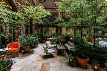Tribeca is one of New York City's most under-the-radar neighborhoods, beloved by locals and plugged-in visitors who appreciate its proximity to SoHo, Greenwich Village and Wall Street, but love being away from the tourist troves. One of the area's biggest spokespersons is Robert De Niro, who spearheaded the Greenwich Hotel, a bold statement of handcrafted design. The work of numerous artisans from around the world is woven into the interiors, which feature such design details as leaded glass windows, exposed oak beams and antique wood floors. A mix of styles, from Tibet to Morocco, is featured in guest rooms, and some have working fireplaces. The hotel's gorgeous library, leafy courtyard, spa and pool are open only to guests, making even first-time visitors feel like they are bona fide Tribeca residents.